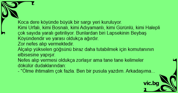 - "Ben Beybaş Köyünden arkadaşım Halil'e 1 mecit borç verdiydim. Kendisi beni göremedi. Biraz sonra taarruza kalkacağız.