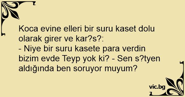 - Niye bir suru kasete para verdin bizim evde Teyp yok ki? - Sen s?tyen aldığında ben soruyor muyum?