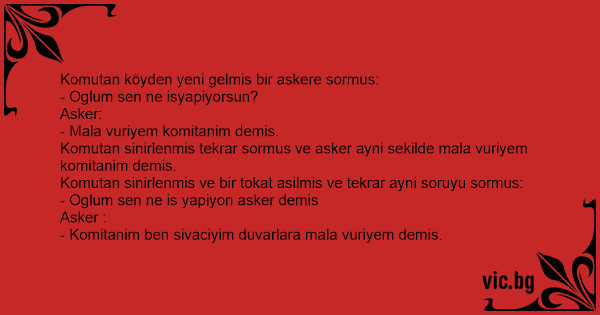 Komutan sinirlenmis tekrar sormus ve asker ayni sekilde mala vuriyem komitanim demis.