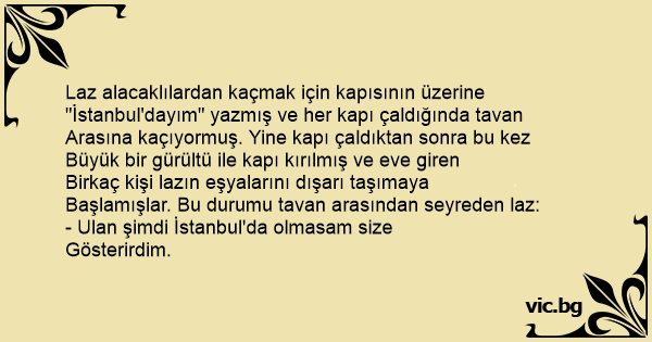 "İstanbul'dayım" yazmış ve her kapı çaldığında tavan