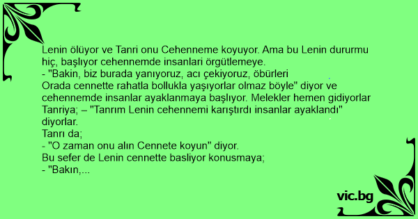 - "Tanrım" diyorlar, "Lenin orayı da karıştırdı insanlar cennette de ayaklandılar ne yapalım?"