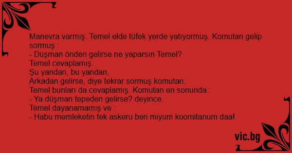 Manevra varmış. Temel elde tüfek yerde yatıyormuş. Komutan gelip sormuş :