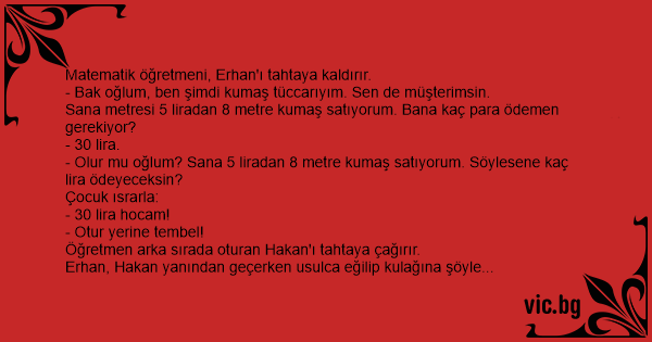 - Olur mu oğlum? Sana 5 liradan 8 metre kumaş satıyorum. Söylesene kaç lira ödeyeceksin?