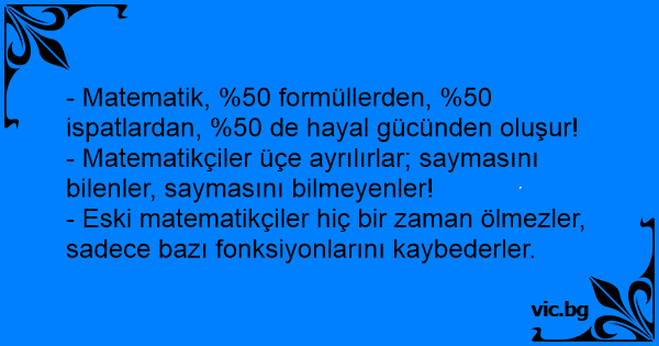 - Matematikçiler üçe ayrılırlar; saymasını bilenler, saymasını bilmeyenler!