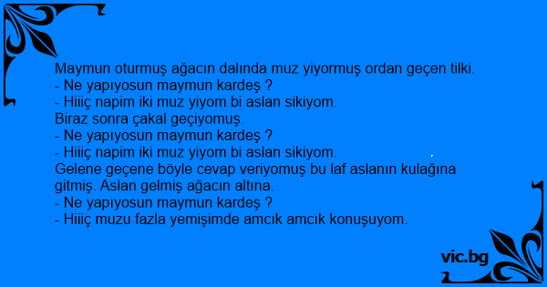 - Hiiiç napim iki muz yiyom bi aslan sikiyom.