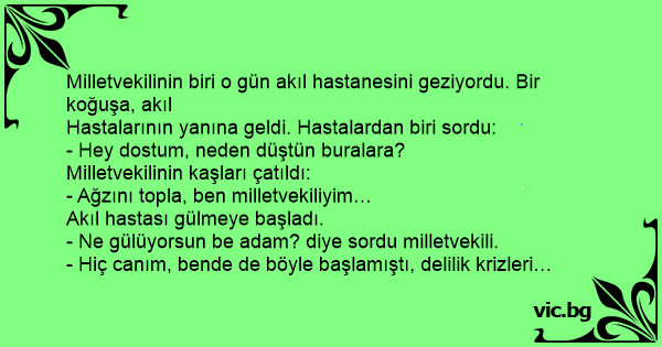 Milletvekilinin biri o gün akıl hastanesini geziyordu. Bir koğuşa, akıl