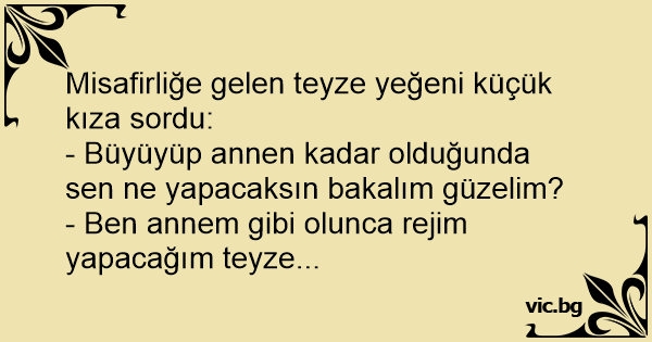 - Ben annem gibi olunca rejim yapacağım teyze...