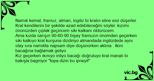 Ama kızda sarışın 90-60-90 bişey fransızın önümden geçerken siki kalkıyo kral kurşuna dizdiriyo almandada ingilizdede aynı olay sıra namıkta napsam diye düşünürken aklına . Ikini bacağına bağlamak geliyo
