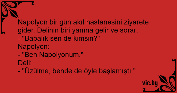 Napolyon bir gün akıl hastanesini ziyarete gider. Delinin biri yanına gelir ve sorar:
