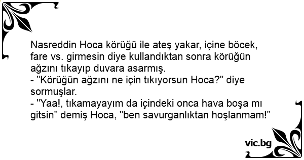 - "Körüğün ağzını ne için tıkıyorsun Hoca?" diye sormuşlar.