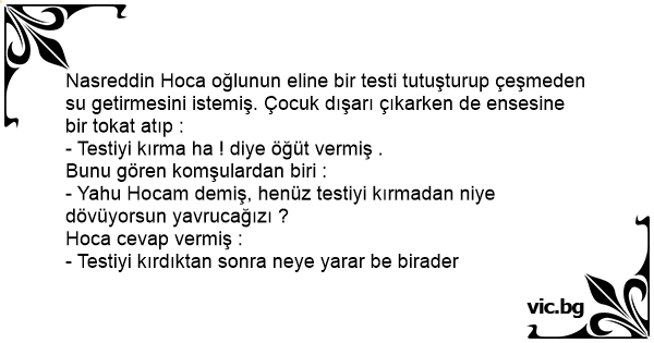 - Yahu Hocam demiş, henüz testiyi kırmadan niye dövüyorsun yavrucağızı ?