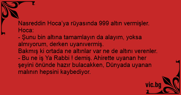Nasreddin Hoca’ya rüyasında 999 altın vermişler. Hoca: