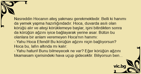 - Yahu Hoca Efendi! Bu körüğün ağzını niçin bağlıyorsun?