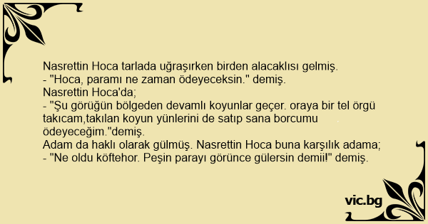 - "Hoca, paramı ne zaman ödeyeceksin." demiş.