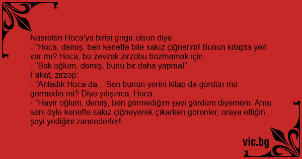 - "Anladık Hoca da... Sen bunun yerini kitap da gördün mü görmedin mi? Diye yılışınca, Hoca: