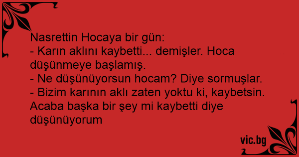 - Karın aklını kaybetti... demişler. Hoca düşünmeye başlamış.