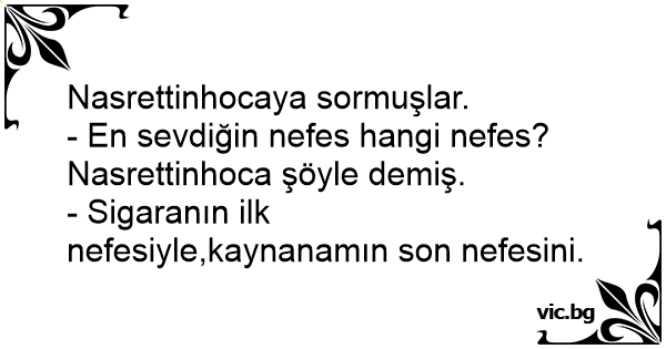 - Sigaranın ilk nefesiyle,kaynanamın son nefesini.