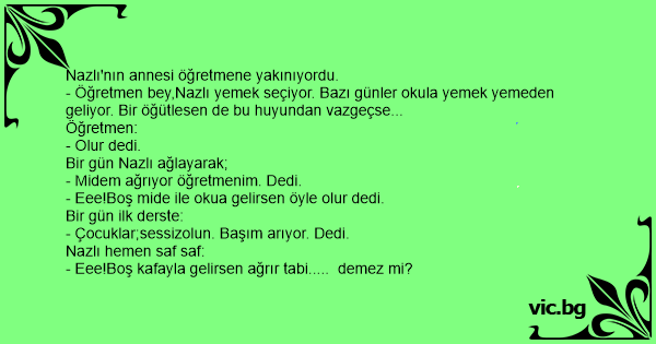 - Öğretmen bey,Nazlı yemek seçiyor. Bazı günler okula yemek yemeden geliyor. Bir öğütlesen de bu huyundan vazgeçse...
