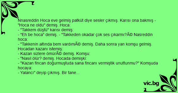 - "Kazan fincan doğurmuştuda sana fincanı vermiştik unuttunmu?" Komşuda hocaya: