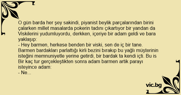 Bir kaç tur gerçekleştikten sonra adam barmen artik parayı isteyince adam: