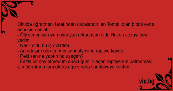 - Öğretmenine oyun oynayan arkadaşım oldi. Haçen cezayi ben yedim.