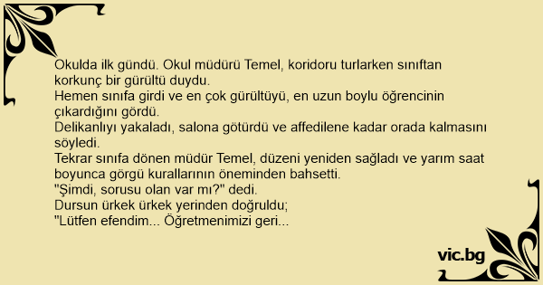 Okulda ilk gündü. Okul müdürü Temel, koridoru turlarken sınıftan korkunç bir gürültü duydu.