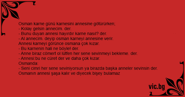 Osman karne günü karnesini annesine götürürken;