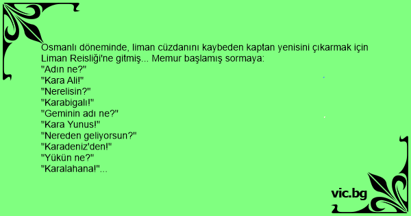 Osmanlı döneminde, liman cüzdanını kaybeden kaptan yenisini çıkarmak için Liman Reisliği'ne gitmiş... Memur başlamış sormaya: