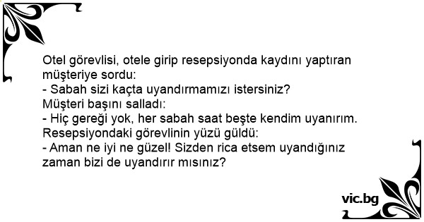 Otel görevlisi, otele girip resepsiyonda kaydını yaptıran müşteriye sordu: