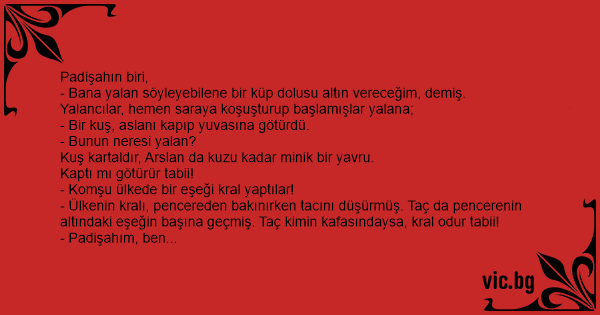 - Bana yalan söyleyebilene bir küp dolusu altın vereceğim, demiş.