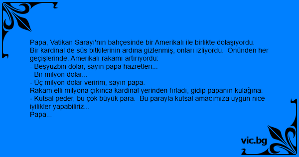 - Beşyüzbin dolar, sayın papa hazretleri...