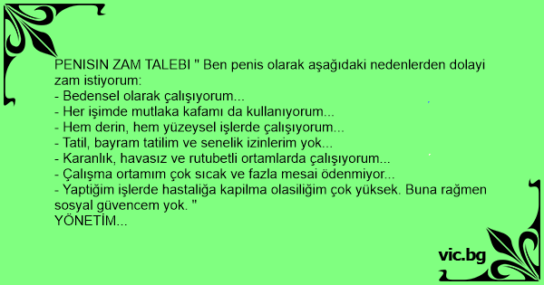 PENISIN ZAM TALEBI " Ben реnis olarak aşağıdaki nedenlerden dolayi zam istiyorum: