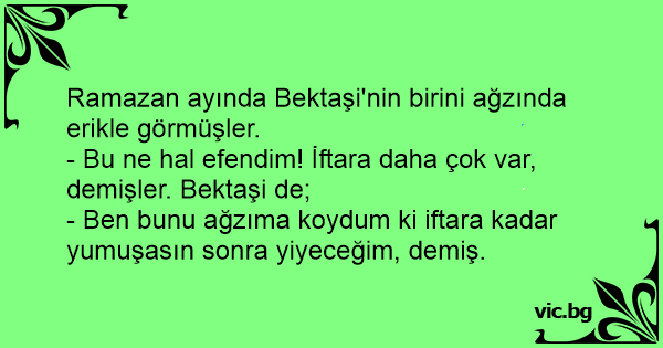 - Bu ne hal efendim! İftara daha çok var, demişler. Bektaşi de;