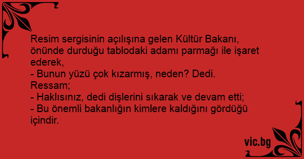 Resim sergisinin açılışına gelen Kültür Bakanı, önünde durduğu tablodaki adamı parmağı ile işaret ederek,