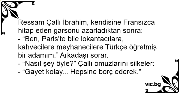 - “Ben, Paris’te bile lokantacılara, kahvecilere meyhanecilere Türkçe öğretmiş bir adamım.” Arkadaşı sorar: