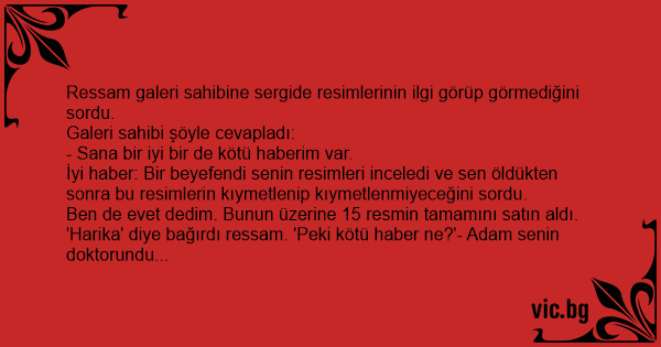 'Harika' diye bağırdı ressam. 'Peki kötü haber ne?'- Adam senin doktorundu...