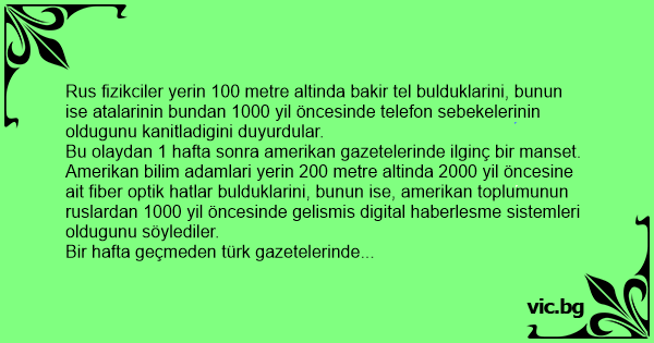 Türk bilim adamlari yerin 500 metre altina kadar kazdiklarini ve hiçbirsey bulamadiklarini, bunun ise atalarinin 5000 yil öncesinde mobil telefon ve kablosuz iletisim sistemlerine sahip olduklari sonucuna vardilar....