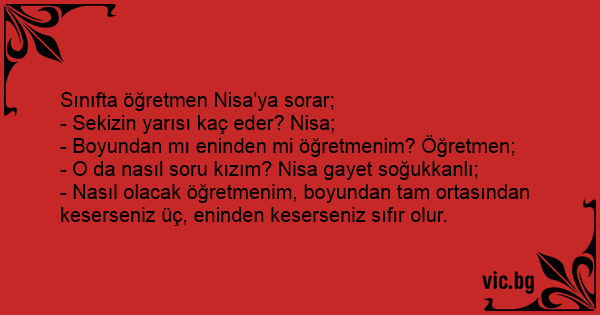 - Boyundan mı eninden mi öğretmenim? Öğretmen;