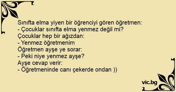 Sınıfta elma yiyen bir öğrenciyi gören öğretmen: