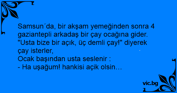 Samsun´da, bir akşam yemeğinden sonra 4 gaziantepli arkadaş bir çay ocağına gider.