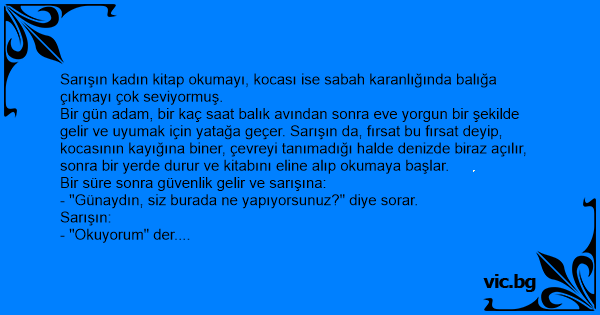 Sarışın kadın kitap okumayı, kocası ise sabah karanlığında balığa çıkmayı çok seviyormuş.