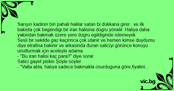 - "Valla abla, halıya sadece bakmakla osurduguna göre,fiyatini duysan siçarsin.."