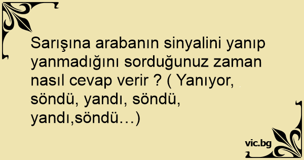 Sarışına arabanın sinyalini yanıp yanmadığını sorduğunuz zaman nasıl cevap verir ? ( Yanıyor, söndü, yandı, söndü, yandı,söndü…)