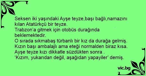 Seksen iki yaşındaki Ayşe teyze,başı bağlı,namazını kılan Atatürkçü bir teyze.
