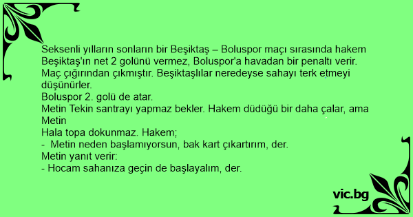 Seksenli yılların sonların bir Beşiktaş – Boluspor maçı sırasında hakem Beşiktaş'ın net 2 golünü vermez, Boluspor'a havadan bir penaltı verir.