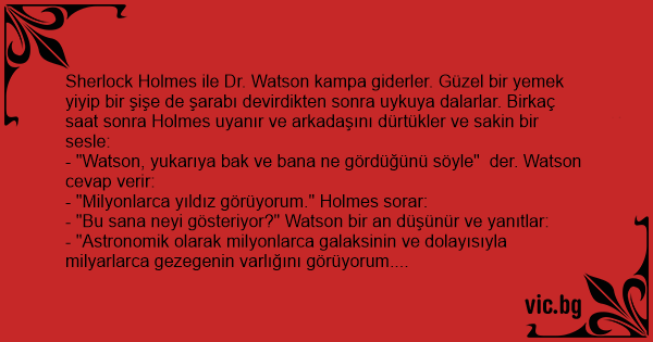 - "Milyonlarca yıldız görüyorum." Holmes sorar:
