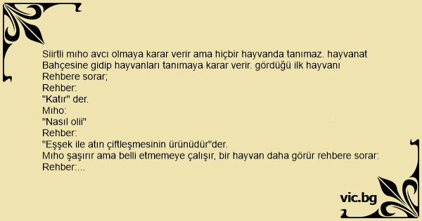 Siirtli mıho avcı olmaya karar verir ama hiçbir hayvanda tanımaz. hayvanat