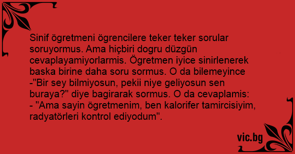 - "Ama sayin ögretmenim, ben kalorifer tamircisiyim, radyatörleri kontrol ediyodum".