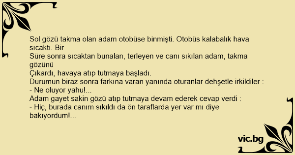 Sol gözü takma olan adam otobüse binmişti. Otobüs kalabalık hava sıcaktı. Bir