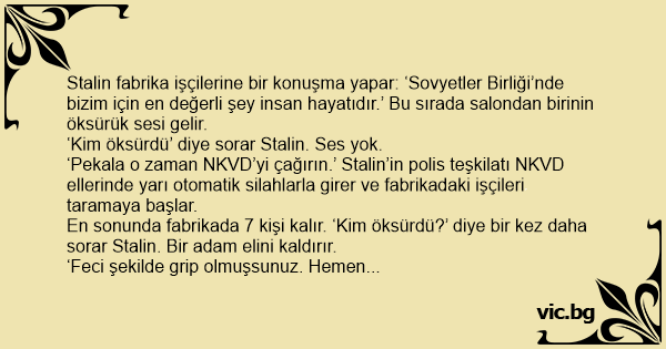 ‘Kim öksürdü’ diye sorar Stalin. Ses yok.